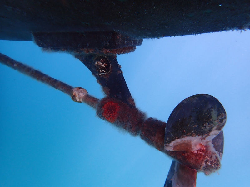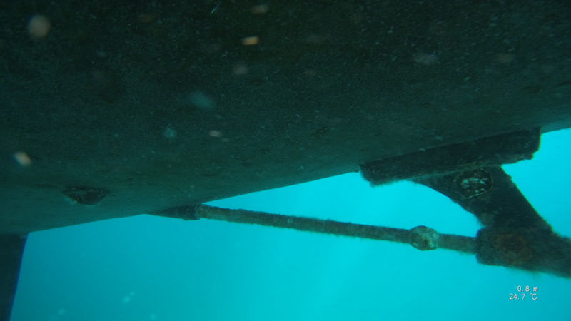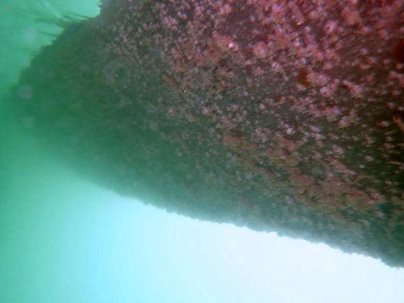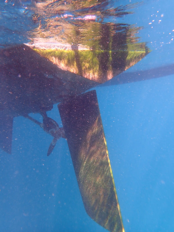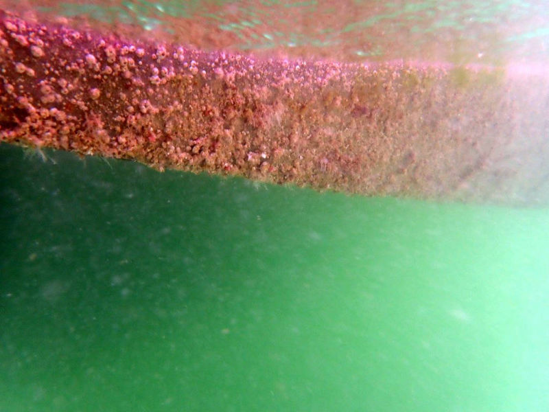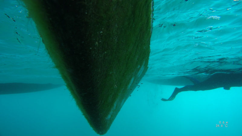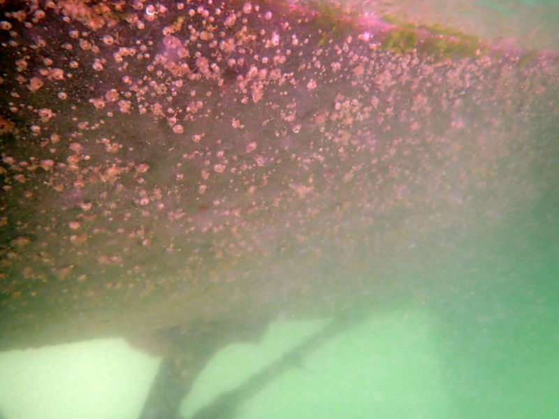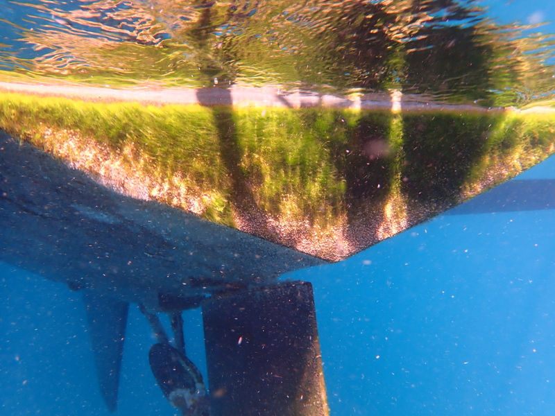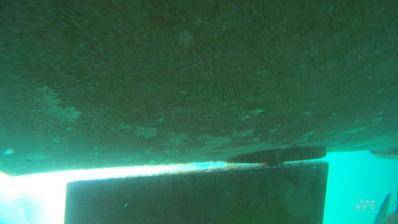 We cleaned the bottom on July 1st and sailed into La Paz on the 2nd. When these photos were taken on July 22nd -- only three weeks after cleaning the bottom -- it was clear that Coppercoat's performance was abysmal. This proved, once again, that if your cruising grounds are limited to Mexico, don't use Coppercoat.
